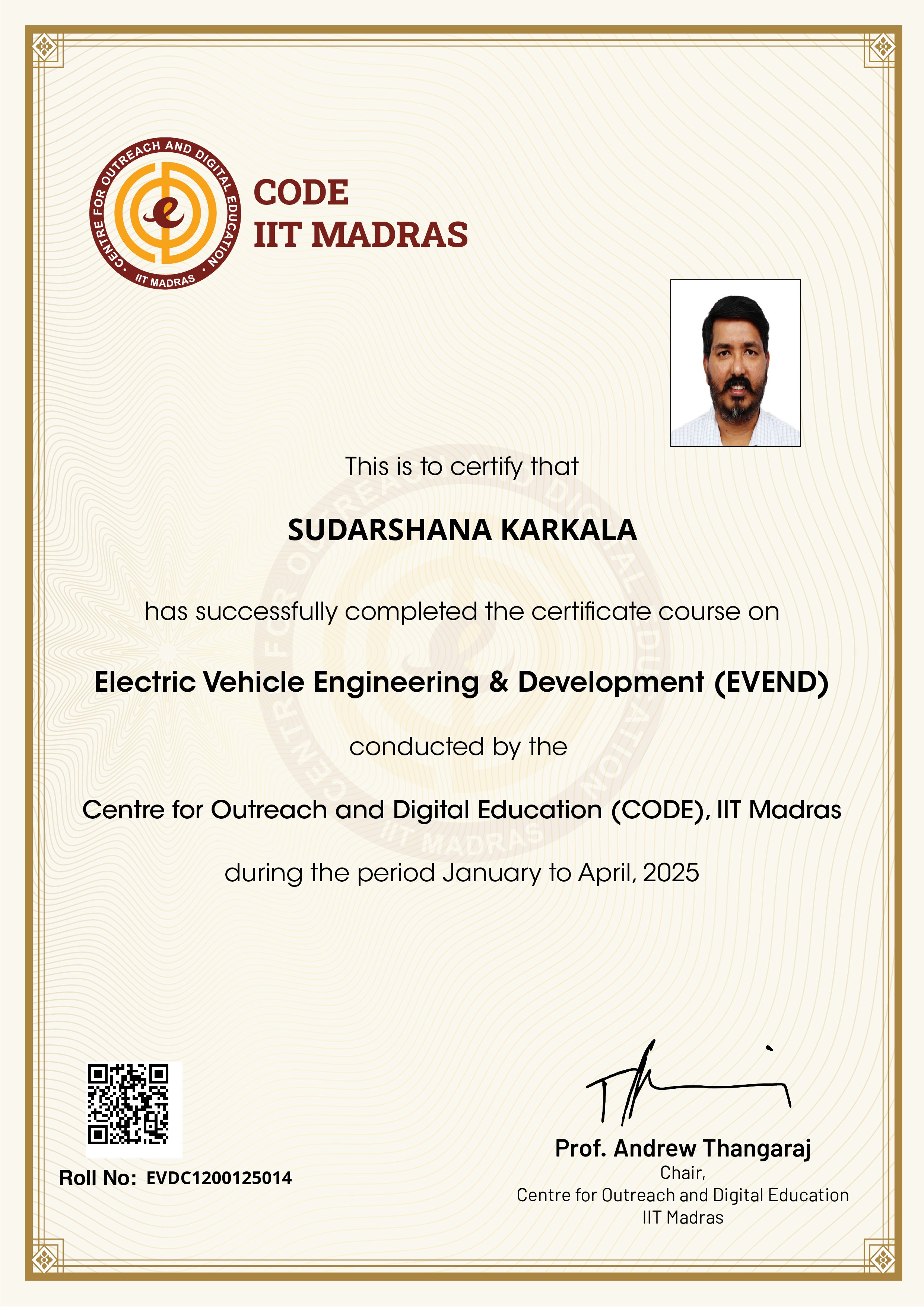 IITM CODE Program: Electric Vehicle Engineering & Development - Certificate Details