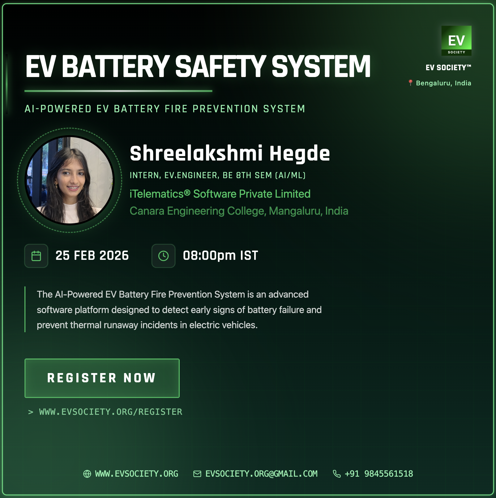 WEBINAR - EV BATTERY SAFETY SYSTEM (LinkedIn Event) AI-Powered EV Battery Fire Prevention System | Required | Completed | 2026-02-25 | View |